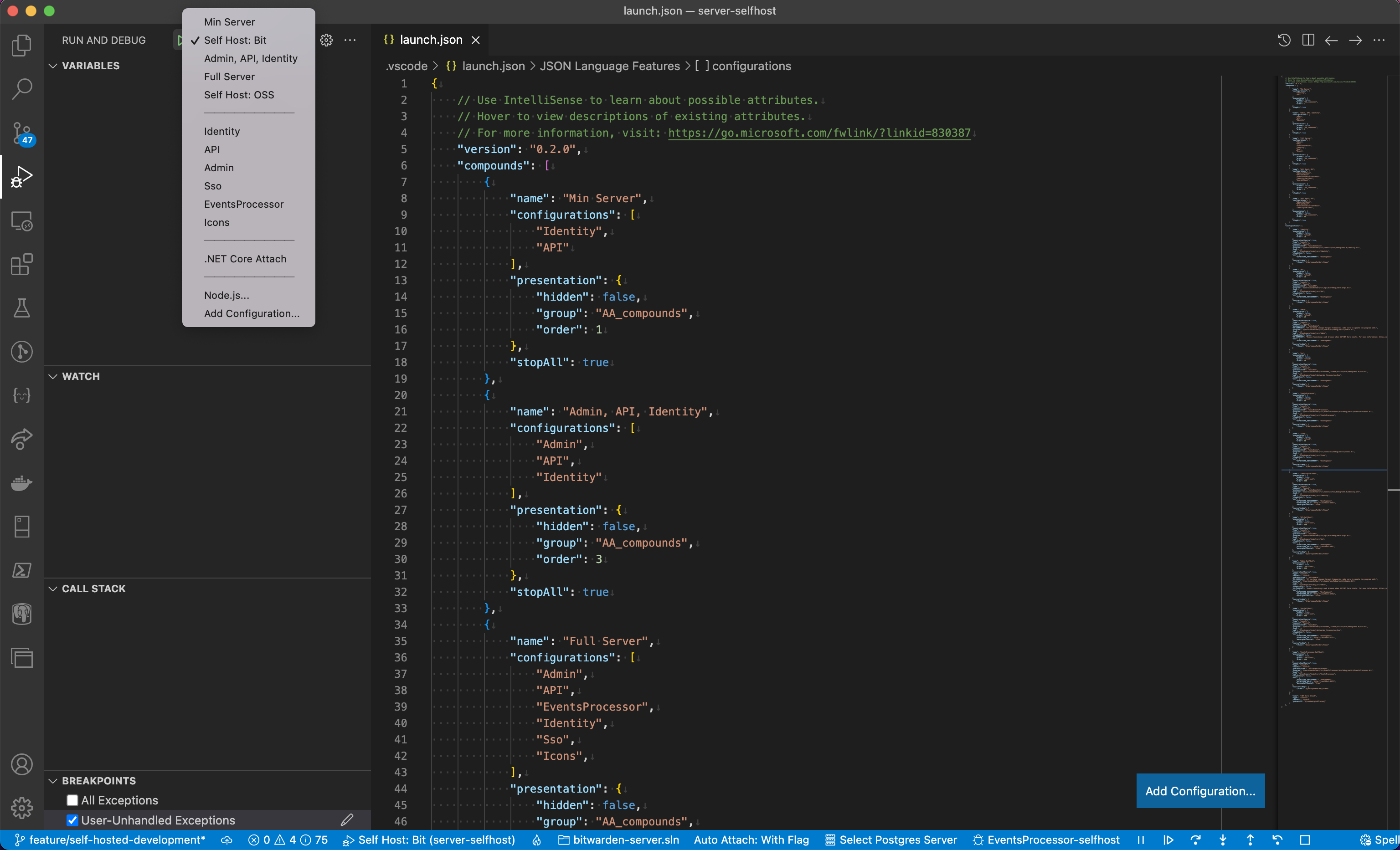 services easy. By default, the individual self-host launches are hidden. Navigate to launch.json